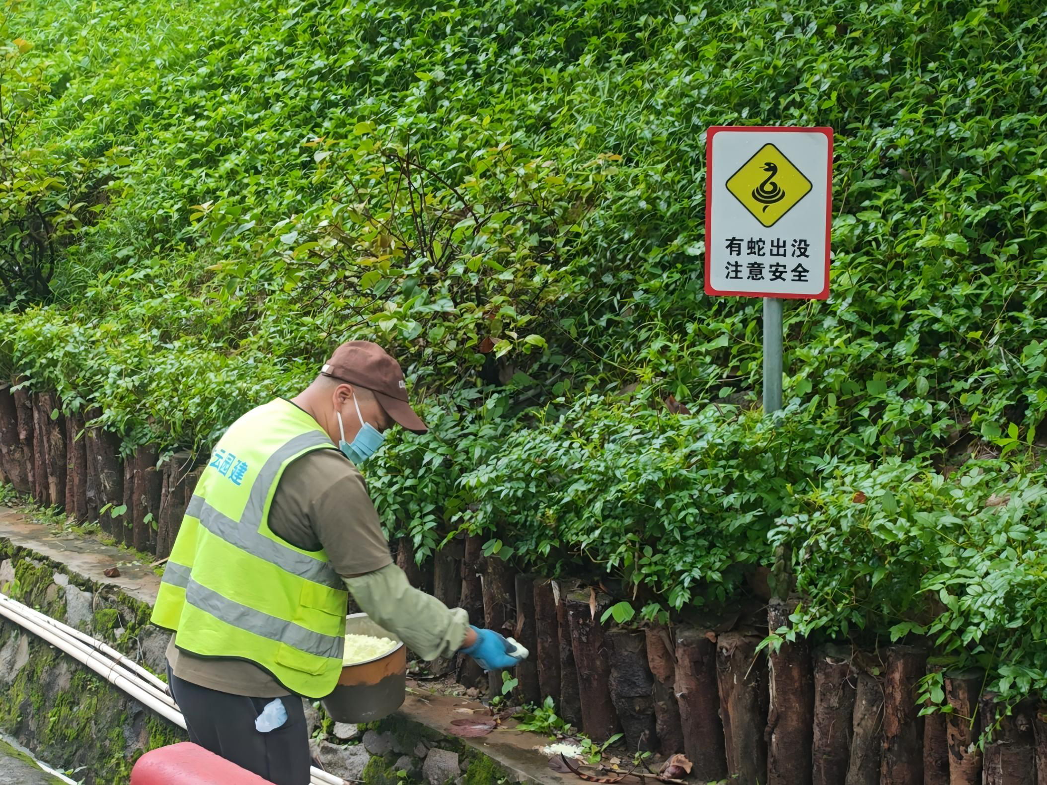 公园还每月2次在园区绿化带隐蔽处、杂物堆放区、下水道周边等区域,投放安全合规的鼠药,做好灭鼠工作,从源头上减少蛇类因为觅食进入园区,更好保障游客人身安全。