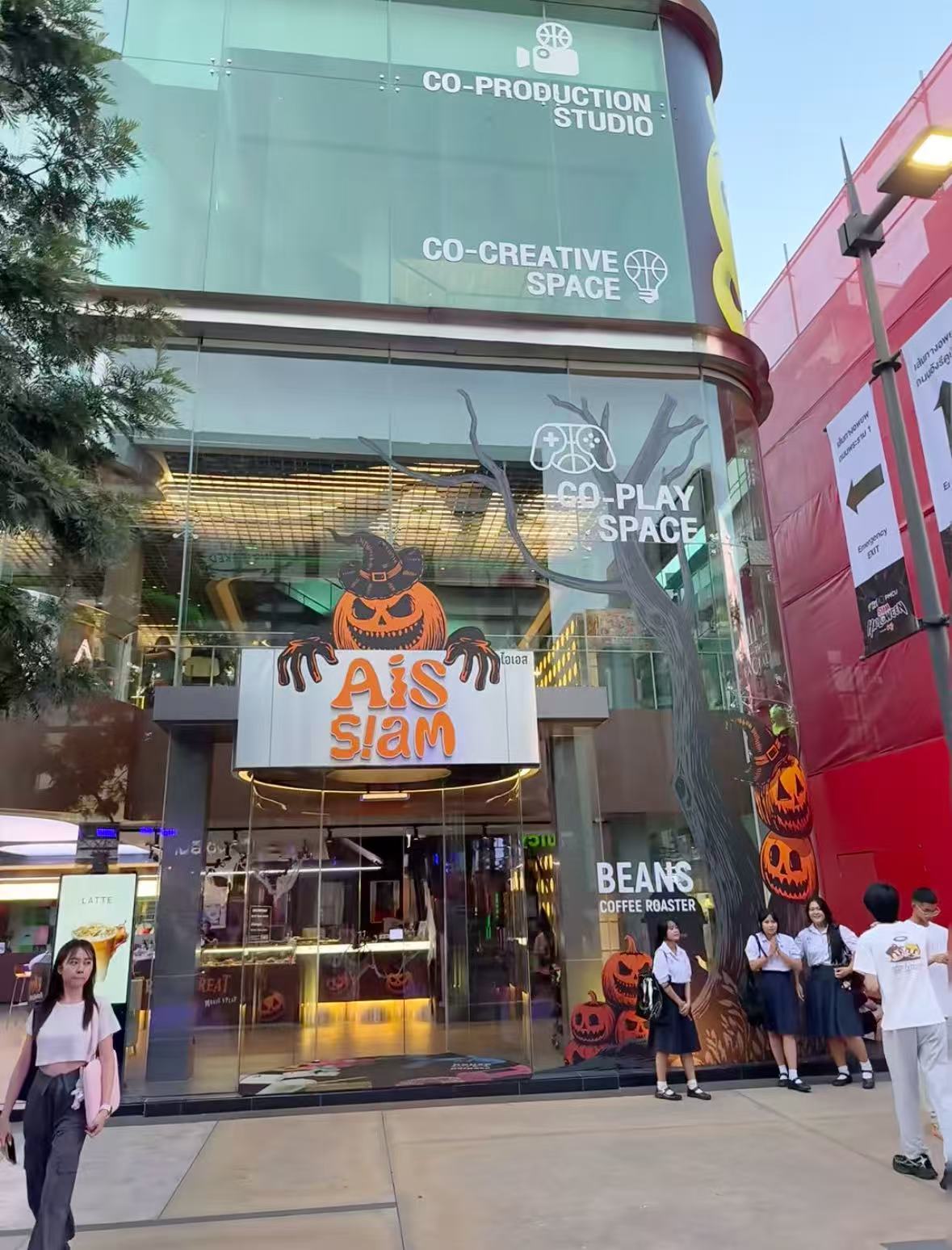 接近11月的曼谷步入一年之中最凉爽的季节,市中心暹罗广场的步行街上,万圣节装饰早已铺满——南瓜灯、蜘蛛网和骷髅骨架点缀着店铺橱窗,化着各式妆容的游客穿梭其间,整条街仿佛一个盛大的化妆舞会现场。