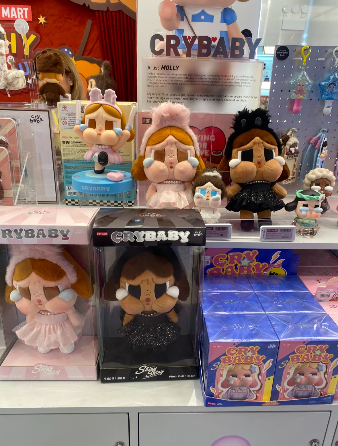 Crybaby源自泰国设计师Molly处于失业焦虑期的涂鸦作品,其传递的“脆弱与治愈感”恰好击中了当地年轻人的情绪需求。